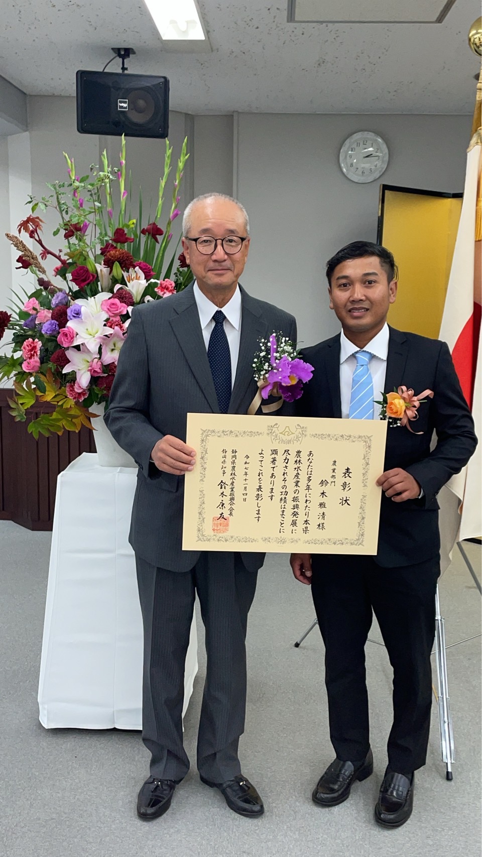 先日「静岡県農林水産業功労者表彰式」にて、静岡県知事から表彰状を頂きました!