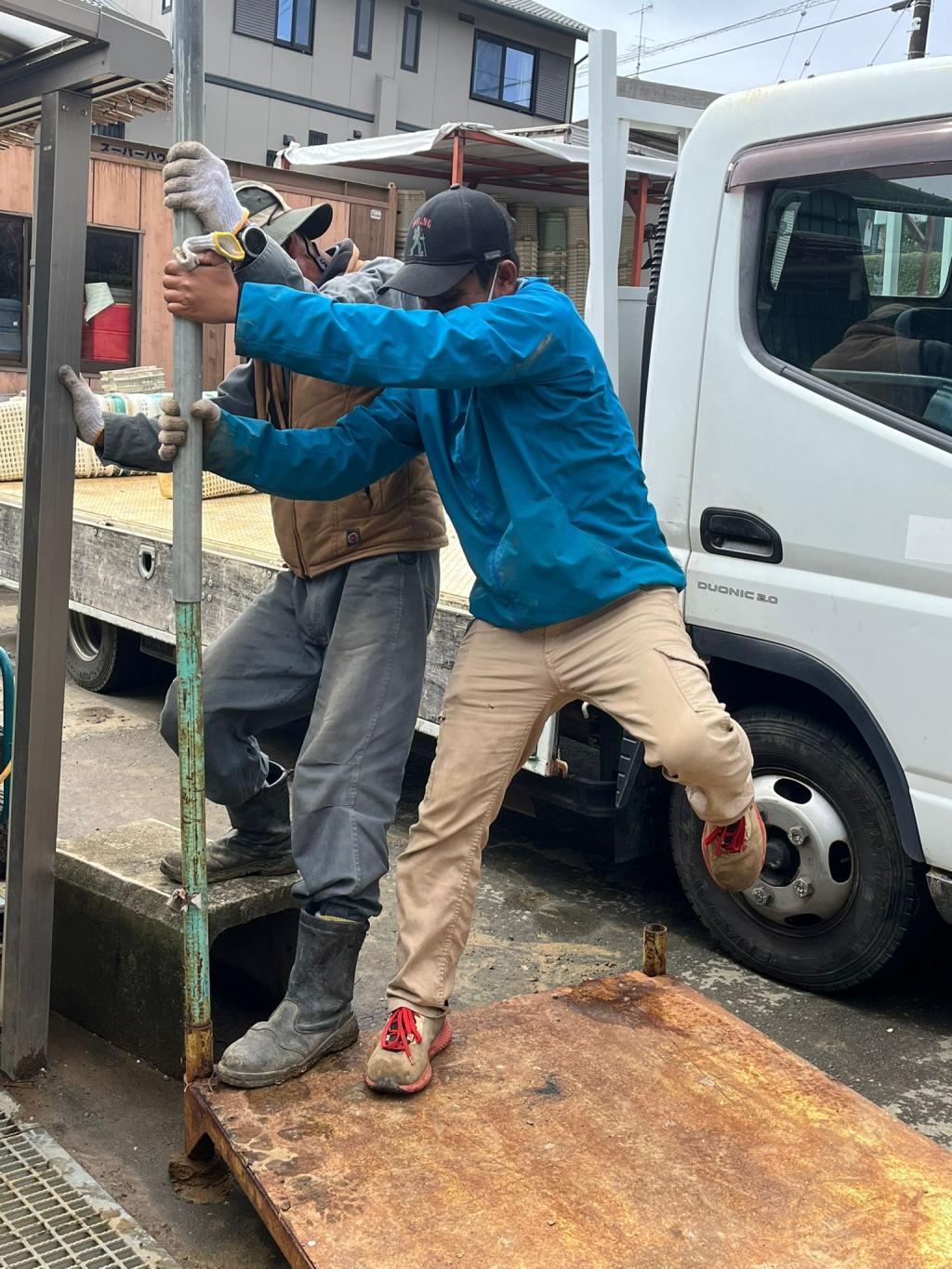 これは、曲がった鉄パイプをなおしてくれているところです。助かります!
